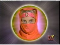Kat's head, within a yellow circle, transforms into Ninjetti, then to Ninja Ranger mode. |
