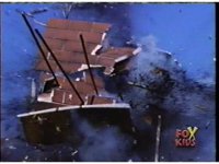 Cuts turn around and follow-up of it then smashing a model home to bits. |