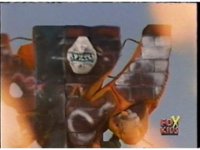Fades out; Trims start to hide the fact this is the Zord spark bursting. Cuts follow-up of giant eye in sky over Brick Bully. |