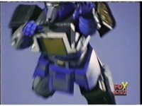 Close on Blue Shogunzord as it holds up both hands and reaches toward the screen. |