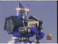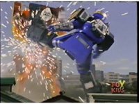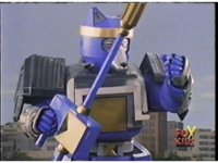 Close on Blue Shogunzord, doing a quick pose, then rushing forth to our slight left. |
