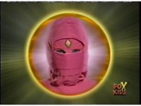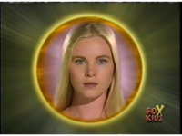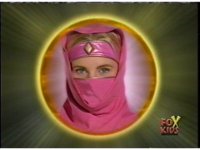 Kat's head, within a yellow circle, transforms into Ninjetti, then to Ninja Ranger mode. |