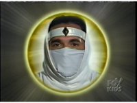 Lord Zedd stands at throne, facing our right, begins emitting his red ray vision. |