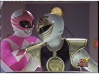 Zoom in on cockpit to Pink Ranger, turning around from her work pressing buttons on wall, holding up fist concernedly nodding. She touches White Ranger's shoulder, he looks at her, nods, then continues to work the controls. |