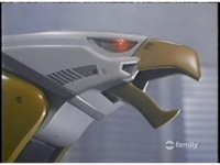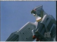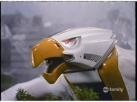 Close-up on Falconzord's head, as it jerks up and down, shrieking. |