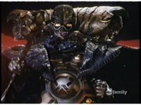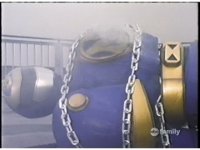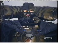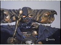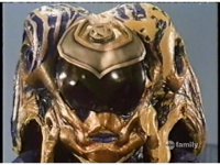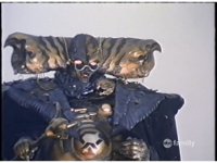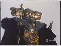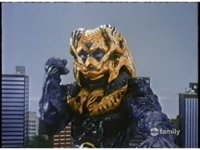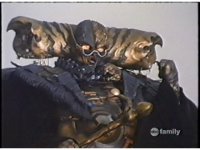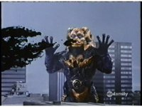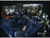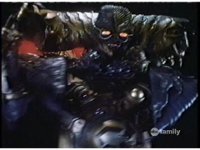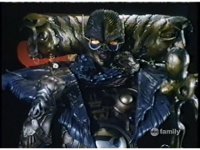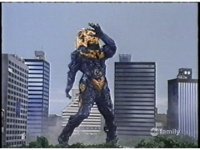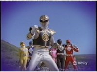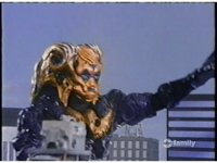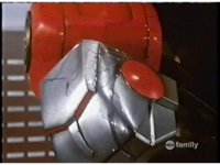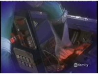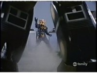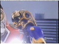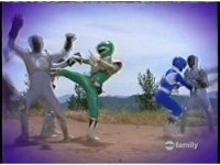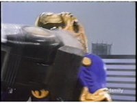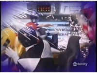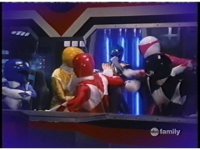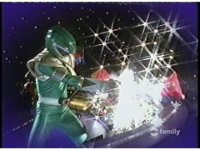 Evil Green Ranger rips out console in Command Center, causing Zordon to get staticky. Evil Green Ranger pops up in Megazord cockpit, sparkily knocks the Rangers around. |