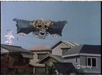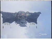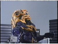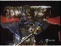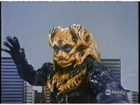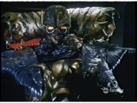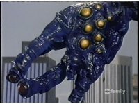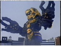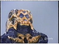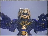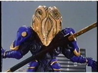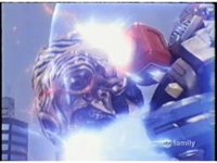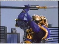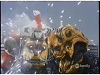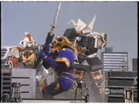 Close on Ninjor-Globbor getting punched away by Shogun Megazord. |