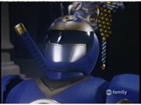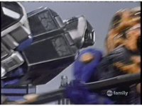 Upward side angle, as Blue Globbor & Ninja Megazord meet into a quick arm lock, that the Megazord breaks out of. |