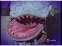 Sharp zoom in on Blue Globbor, looking upward our right. |