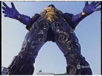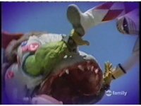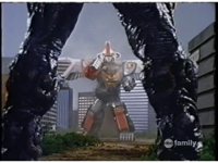 Ninjor-Globbor gets kicked in the head by the Megazord's froggy foot. |