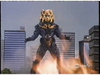 Close on Ninjor as he collapses, smoking, and writhing. |
