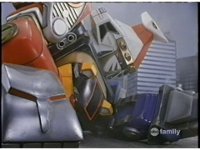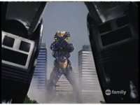 Pan up Ninja Megazord as it rushes at us, with wide arm movements. |