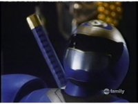 Ninjor-Globbor lands before Shogun Megazord, but his sword slash gets blocked by its saber. He then tries to slash Ninja MegaFalconzord, but Shogun again blocks with its saber. |