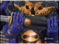 Ninjor-Globbor rushes up and sparkily slashes Shogun Megazord twice, then does so once on Ninja MegaFalconzord. |