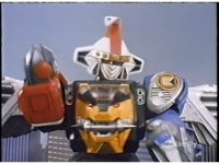 Close on Shogun Megazord's right shoulder symbol of the golden fish thing, shimmering, zoom out as in a flash of golden light, the hilt of its Saber materializes in its right hand. |