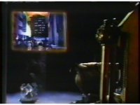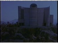 Slow push in across the city, as Master Vile motions arm and staff about, talking a lot. As the camera gets close to him, he finally teleports away. |