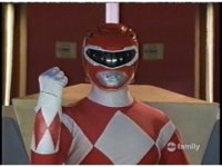 Close on Red Ranger in Ninja Megazord cockpit, excitedly raising a fist, then pumping it skyward. |