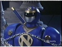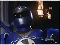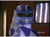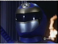 Close on Blue Ranger in Ninja Megazord cockpit, raising a fist, then pointing forth for a moment, then stopping. |