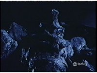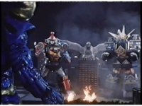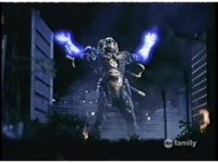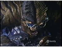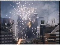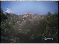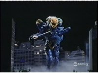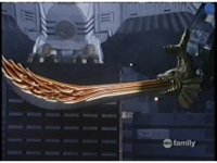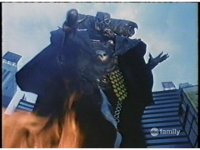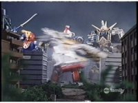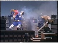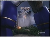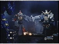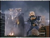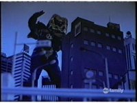 Follow-up additional standing-around shots of monster and Zords are cut. |