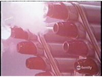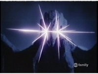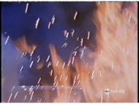 Close on Blue Globbor as the flames cut across him, causing him to flare and shimmer. |