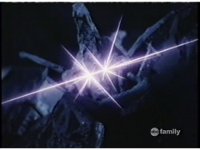 Master Vile raises staff, trailing pinkish energy to create a brief round symbol in the air for a moment, sharp zoom out as he fires a constant blast of energy to our slight right. |