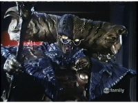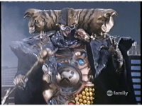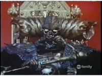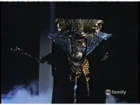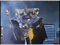 Zoom in, between Ninjor Battle Mode's legs, onto Master Vile, motioning hand and staff about as he angrily talks. |