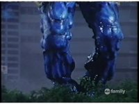 Blue Globbor rushes over and joins Master Vile's side, zoom out to view this between Ninja Megazord's legs. |