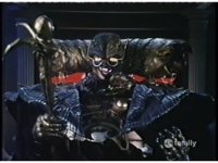 Pan up on Master Vile, standing crooked, talking, then straightening up, smoking but undamaged. |