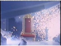 Slight zoom in on Master Vile, motioning staff while talking on his throne. |