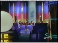 Distant shot from behind/near Viewing Globe, as across the room, Alpha stands facing Zordon, typing on console, as Zordon's head slowly rises up into its normal spot. |