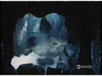 Shot of interior cavern area as the places starts shaking, and rocks begin to rain down. |