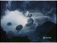 Another shot of interior cavern area as the places shakes more violently, more rocks falling. |