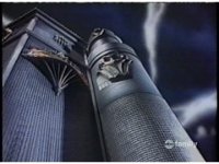 Straight upward angle on Lunar Palace, beneath Zedd's balcony, as the whole places shakes and unnatural lightning crackles about the sky. |