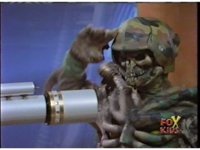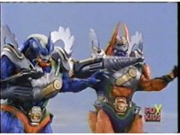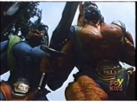 Black Battle Borg leaps up and punches forth. Repeat with a different take. |