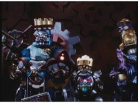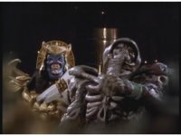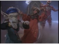 Rito & Goldar teleport up from the basement, scare Alpha & Tanya, backtalk Zordon, and teleport out with the Zeo Crystal. |