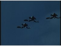 A trio of Quadrafighters fly in formation through the sky, turning to our right together. |