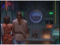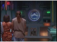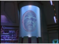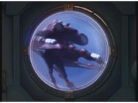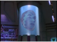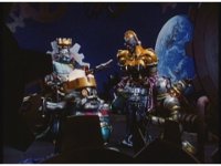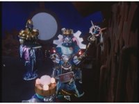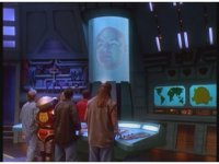 Zordon in his new Power Chamber plasma tube superimposed into various scenes above the Ranger teens. |