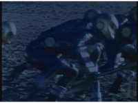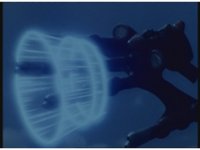 Close on Quadrafighter, flying to our left, two middle bent-legs glowing and then releasing energy-ring beam. |