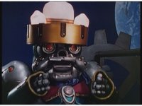 Zoom in close on King Mondo, saying something with a motioning of his arms, while off in the background Prince Sprocket watches, and Queen Machina jerks about in a manic fit. |