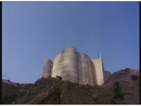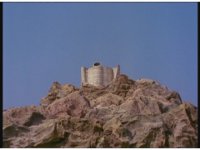 Pan down from the blue sky onto an upward angle on the Command Center exterior, the mountain beneath it dominating the shot. |