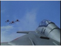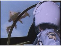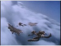 Recycled again, transitions out. Additional usable footage of the aerial dogfight is cut. |