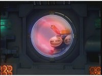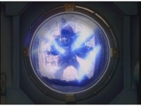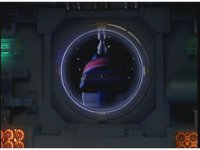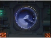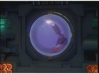 Close-up on Zeonizer, the golden disc thing pops up, releasing a shimmering green light. |