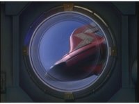 Close side angle in cockpit, Red Zeo Ranger briefly glancing out window at Zeozords Three & Four connecting in mid-air, before turning his attention back to his console work, nod-talking. |