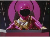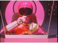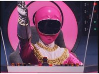 As her cockpit shakes about, Pink Zeo Ranger jerks her head forth and down to our right. |