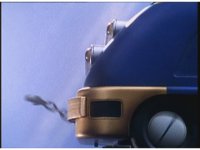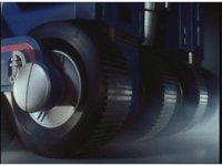 Close-up, side angle, on Zeozord Two, driving along as the chain before it retracts into its front bumper. |