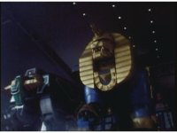 Track around to the left, as Zeozord Five passes over Zeozords One & Two, causing their Battle Helmets to slide forth off of their now-stationary forms. |