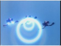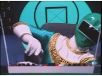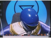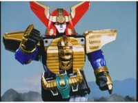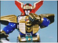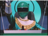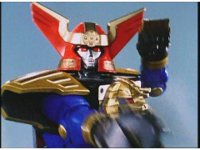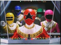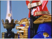 Zoom out from Red in Megazord cockpit, raising his right fist, nod-talking. Then, all together, the five Zeo Rangers cross their wrists, spread arms around in a circle and raise their right arms forth and up for a moment, before grabbing controls. |