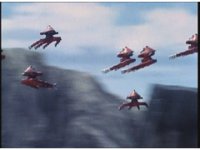 Cuts a bunch of follow-up cockpit shots of other Rangers, nature footage, fire explosions and lava shots. |