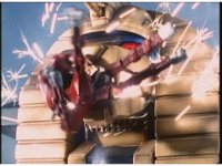 Close on the pair, as Staroid punches at Zeo Megazord, it blocks the hit, holds his arm for a moment, then releases, before turning toward us and punching right fist into the screen. |