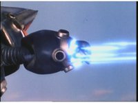 Zeozord One fires a bright blast from its plunger stick cannon to our slight upper left. |